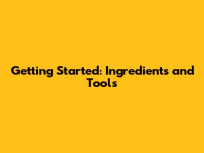 Getting Started: Ingredients and Tools