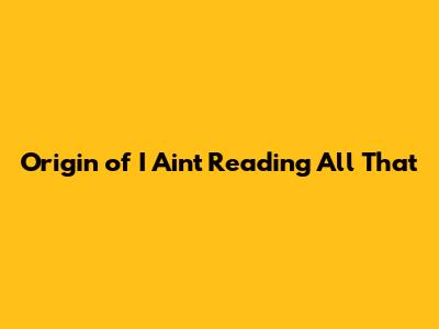 Origin of "I Ain't Reading All That"