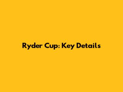 Ryder Cup: Key Details